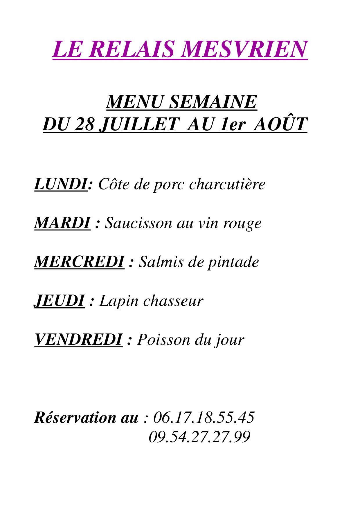 menu du jour
